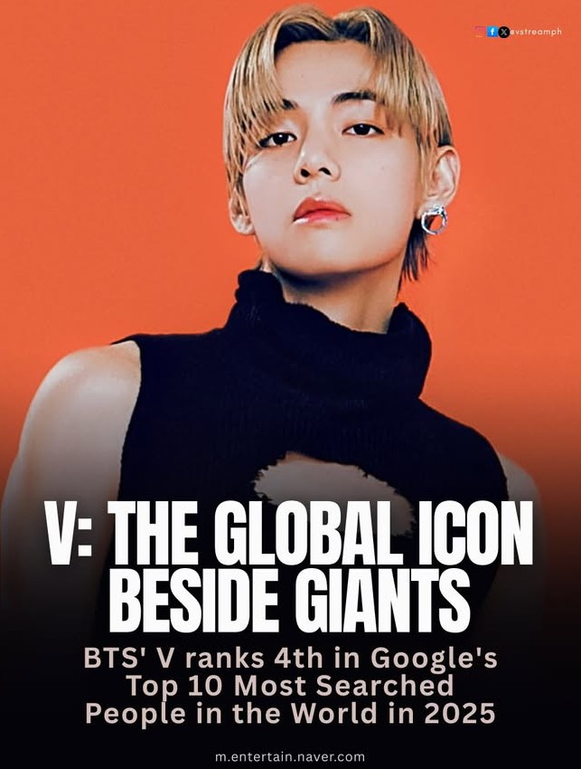 BTS' V ranks 4th in Google's Top 10 Most Searched People in the World in 2025🤩🤩👏🏻👏🏻
