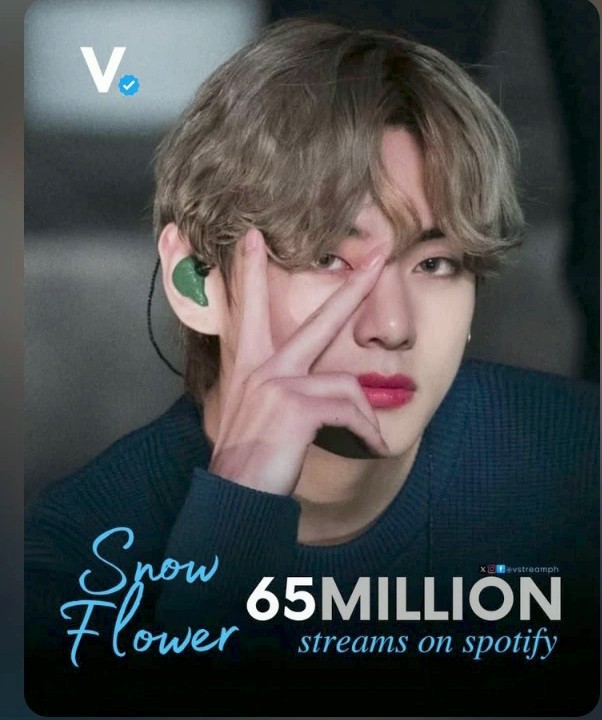 SNOW FLOWER by V (ft Peakboy) has suprassed 65MILLION streams on spotify👏🏻👏🏻👏🏻👏🏻👏🏻