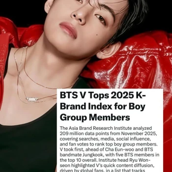 KIM TAEHYUNG tops the 2025 K-Brand Index for Boy Group Members based on Asia Brand Research Institute’s analysis from November 2025.