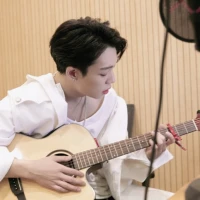 clean cut black hair+white unbuttoned shirt+a guitar🎶💜😍