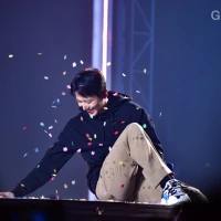 #YongHwa Recogiendo papelitos de colores para aventarlos hacia arriba y caigan sobre él, para q las fans le tomen fotos. Concierto Still62 👩‍🎤🎤🎶🎸